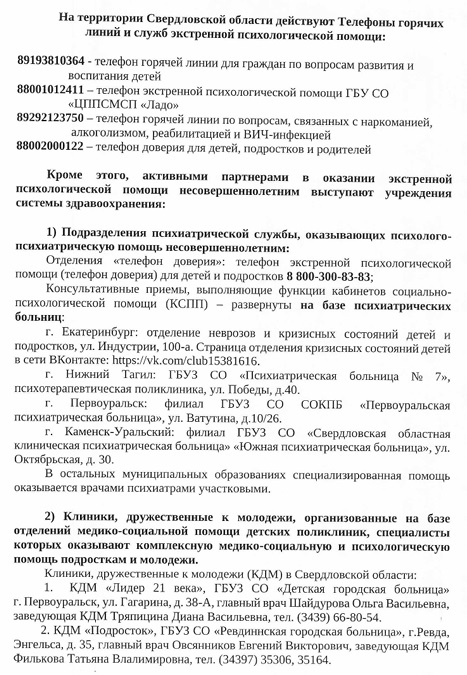 Бесплатные телефоны экстренной психологической помощи Министерства здравоохранения Свердловской области